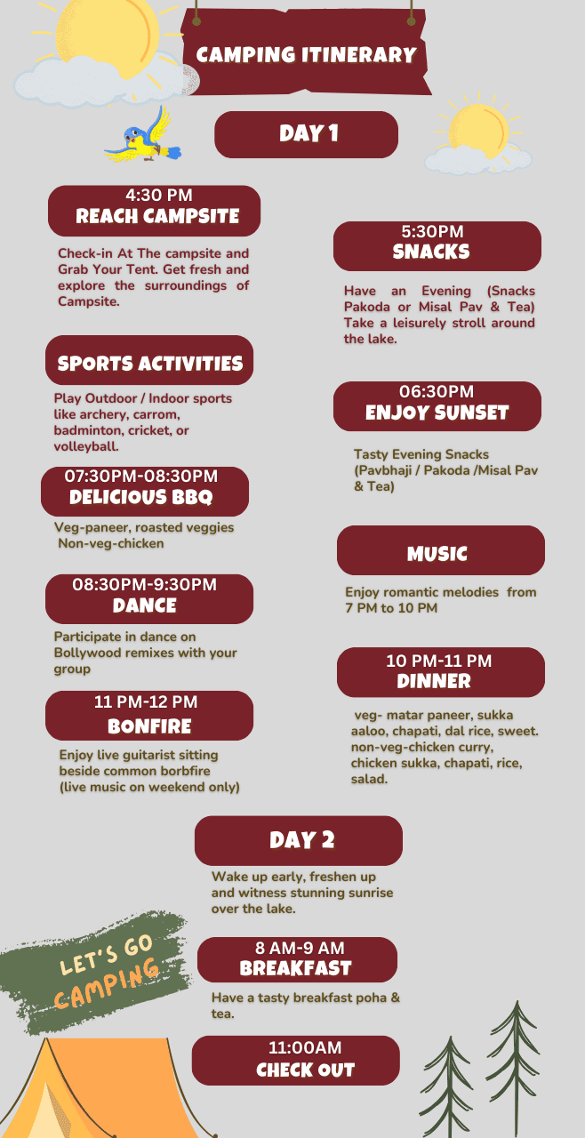 You may have queries like where is best pawna camping near me or glamping near me and when its right time to visit. The post-monsoon and winter months, from October to March, are ideal for Pavana Dam Camping because of the nice weather and lush, green surroundings.